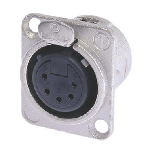 5 pole female receptacle, solder cups, Nickel housing, silver contacts