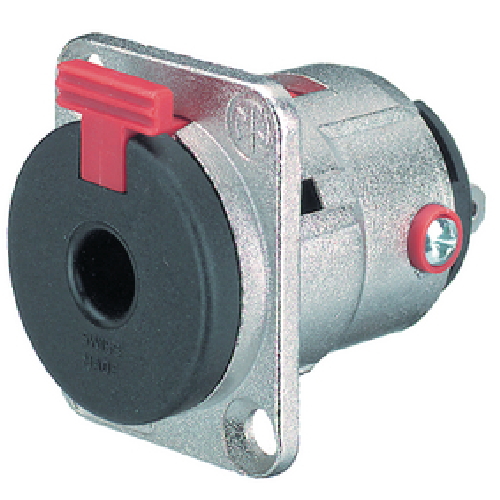 Locking 1/4″ phone jack, D-size shell, nickel metal housing and silver contacts