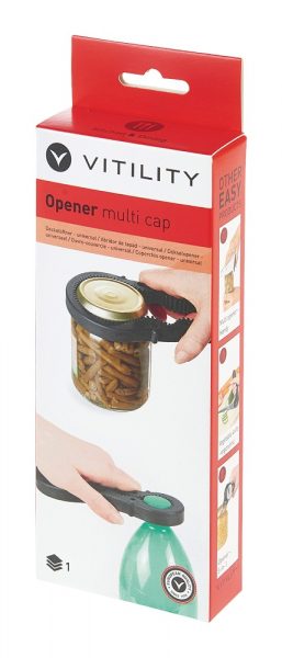 With the non-slip opener less strength is necessary for opening and closing caps or lids in different sizes.