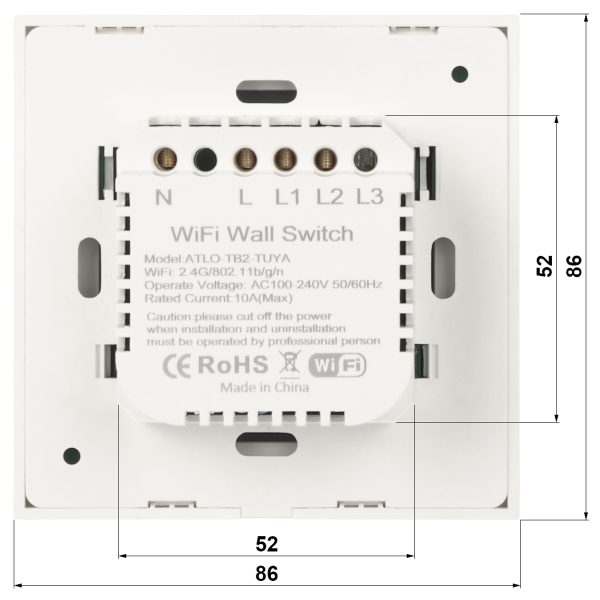 L’interruttore ATLO-TB2-TUYA consente di accendere e spegnere l’illuminazione in modalità wireless tramite l’applicazione o tramite il pannello tattile. L’interruttore può funzionare in due configurazioni di alimentazione: 1. il filo neutro N è collegato alla lampada e all’interruttore (senza condensatore) 2. il filo neutro N è collegato solo alla lampada (con condensatore). Una caratteristica unica di questo interruttore è che non è necessario collegare un filo neutro N, il che significa che può essere utilizzato in impianti tradizionali senza dover modificare l’impianto elettrico esistente. Per il corretto funzionamento del dispositivo, è necessario collegarlo alla rete Wi-Fi con accesso a Internet. Oltre al controllo diretto, il dispositivo è capace di programmare l’orario di accensione e spegnimento e il collegamento a diversi eventi di sistema. È possibile creare scenari di azione con altri dispositivi. Il controllo vocale consente di controllare il dispositivo tramite comandi vocali da Amazon Alexa o dall’Assistente Google (è richiesto l’accesso a Internet). Tuya è una piattaforma internazionale di domotica che collega migliaia di prodotti creati da diversi produttori. Il sistema può supportare tutti i protocolli di comunicazione più diffusi come Wi-Fi, Zigbee, Bluetooth.