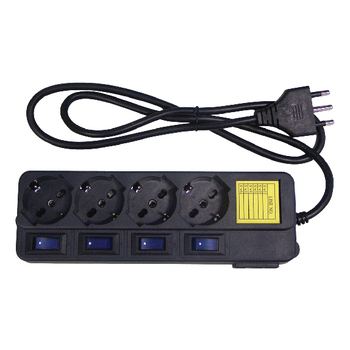 Multipresa con spina 16A 3 vie – 3 prese 10/16A – schuko con interruttore luminoso. Colore nero.