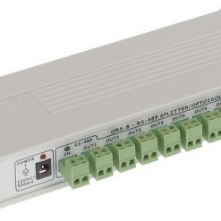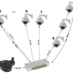 Il dispositivo consente inoltre di dividere un unico bus RS-485 in 8 canali e quindi permette l’utilizzo di una topologia a stella. Di conseguenza, ogni telecamera può essere collegata da un cavo separato RS-485 avente una lunghezza di fino a 1200m, facilitando così l’organizzazione del cablaggio nell’impianto CCTV e aumentando le distanze massime di trasmissione del segnale RS-485.