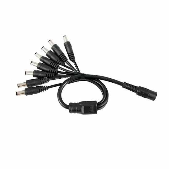 Cavetto di alimentazione ad Y per poter alimentare 8 apparecchiature con unico alimentatore. Possiede jack di alimentazione da 5.5mm x 2.1mm. Particolarmente indicato per sistemi di videosorveglianza o sistemi on-board per telecamere sportive.